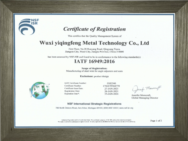 NSFISR认证证书